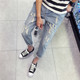 青少年夏季男士破洞牛仔裤男修身韩版百搭九分裤潮流乞丐裤情侣裤