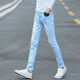 春夏季浅色牛仔裤男士小脚裤韩版青少年长裤子男修身款休闲紧身裤