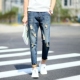 裤子男夏季韩版潮流2017男士牛仔裤青少年哈伦小脚修身破洞九分裤