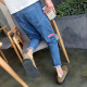 裤子男夏季九分牛仔裤男士小脚裤青少年修身型韩版潮流破洞9分裤