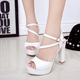 10cm夏季新款防水台性感高跟鞋鱼嘴凉鞋女粗跟女鞋一字甜美休闲鞋
