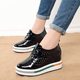 2017春夏季镂空系带单鞋内增高透气小白鞋厚底漆皮运动休闲鞋女