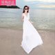 V领显瘦中长款连衣裙夏季雪纺长裙海边度假沙滩裙粉白色韩版显瘦