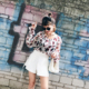 夏季新款V领印花碎花雪纺衫女长袖荷叶边大袖口透视百搭上衣女夏