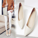 春季浅口单鞋女2017新款高跟鞋女细跟真皮米白色尖头中跟女鞋船鞋