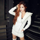 冬季加绒连帽白色外套拉链时尚休闲女装潮纯棉修身性感包臀连衣裙