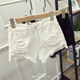 韩国破洞毛边学生牛仔短裤女夏黑白宽松大码性感热裤乞丐裤潮裤子