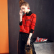 F欧洲站半高领套头长袖上衣宽松大码韩版学生打底短款红色卫衣女