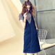 F欧美2017春装款新款女装中长款春夏两件套条纹t恤牛仔背带裙子套