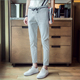 本渡夏装新款抽绳九分裤男韩版修身小脚裤英伦9分裤哈伦质休闲裤