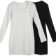 青宿 春装新款中长款纯棉t恤女 长袖 修身包臀黑色圆领紧身打底衫