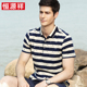 恒源祥中年男士短袖t恤条纹大码爸爸装夏季新款翻领丝光棉polo衫