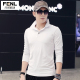 FENL秋季男长袖T恤翻领修身纯色男装 新款秋衣服装打底衫纯白色