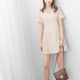 A-MIN 气质款 V领休闲简约纯色宽松短袖百褶连衣裙女裙子短裙新款