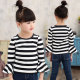 2017春秋款女童长袖T恤5中小童4宝宝喇叭袖条纹打底衫3岁儿童上衣
