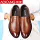 奥康男鞋2017夏季新款真皮商务休闲鞋男士头层牛皮套脚韩版皮鞋子