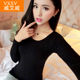 春秋天女神长袖自带罩杯修身打底衫bra-t有胸垫棉质保暖内衣冬季