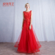 一字肩敬酒服新娘长款2017新款春季时尚显瘦红色结婚宴会晚礼服夏