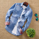 薄款春季修身型男士牛仔衬衫长袖韩版潮流学生百搭衬衣服帅气韩国