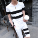 2017新款夏季套装潮流韩版帅气时尚两件套短袖t恤一套衣服男士V领