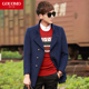 GOUOMO2016秋季毛衣男衬衫领针织衫男士毛衣韩版假两件套头男线衣