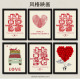创意个性双喜喜字新婚装饰画简约结婚礼物挂画有框画婚房壁画墙画