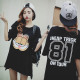 限时包邮韩版夏装宽松大码长款时尚惊讶兔圆领短袖t体恤裙女纯棉