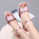 凉鞋女夏平底套趾休闲水钻沙滩鞋松糕厚底平跟漆皮夹趾坡跟女鞋41