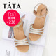 聚Tata/他她夏季专柜同款时尚亮片布中跟侧空女凉鞋2US08BL6