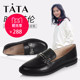 聚Tata/他她2017夏季牛皮时尚金属扣正装女单鞋小黑皮鞋D1808BM7