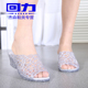 上海回力水晶坡跟女款拖鞋中高跟时尚拖鞋闪粉防滑增高轻便女凉拖