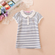 童装夏装女孩2017新款女童翻领T恤衫中大童短袖T恤棉条纹学院上衣