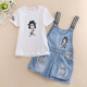 女童牛仔背带裙子2017中大童女装夏装短袖儿童装吊带短裙夏季套装