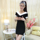 一字肩上衣夏欧美时尚新款修身显瘦短款短袖t恤女 韩国 露肩体恤