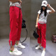 春装新款侧边条纹开叉阔腿裤女宽松运动裤韩版休闲白条九分校服裤
