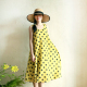 any灰夏季田园丝棉黄色圆领印花波点吊带中腰背心连衣裙原创