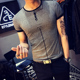 夏季男士新款短袖T恤圆领韩版冰丝纯色打底衫紧身半袖健身运动装