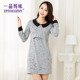 一品妈咪 春夏季修身显瘦长袖哺乳裙 春秋外出时尚韩版喂奶衣上衣