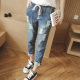大码女装胖mm春装200斤bf破洞宽松九分裤胖妹妹夏季牛仔裤哈伦裤