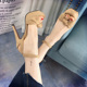 戈蕊丝气质百搭香槟色流苏T型扣包头侧空高跟鞋细跟尖头女鞋单鞋