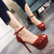 超高跟12cm女鞋子欧美春季新款尖头防水台细跟女鞋子单鞋红色婚鞋