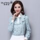 欧昵雪2017秋装新款荷叶边绣花镂空雪纺衫春季长袖蕾丝打底上衣女