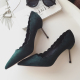 琪琪家 性感细跟春季高跟鞋女 波浪边尖头细跟浅口绒面高跟单鞋