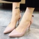 琪琪家2017春款金属扣优雅高跟单鞋女浅口韩版绒面尖头细跟高跟鞋