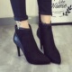 高跟鞋女2017秋冬新款防水台黑色靴尖头细跟靴子及裸靴女高跟短靴