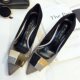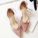 琪琪家 2017优雅小女人 纯色绒面拼接 一字扣尖头浅口中跟单鞋
