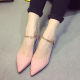 高跟鞋细跟2017春秋新款一字扣浅口尖头中跟单鞋女细跟中跟女鞋潮