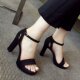 凉鞋女夏新款2017性感黑色绒面粗跟凉鞋厚底显瘦防水台露趾高跟鞋