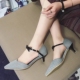 凉鞋女夏新款 尖头细跟单鞋女高跟鞋中跟凉鞋女细跟单鞋女中跟