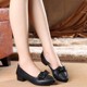 珍源祥老北京布鞋女鞋优雅蝴蝶结粗跟妈妈单鞋黑色职业中跟工作鞋